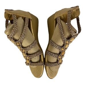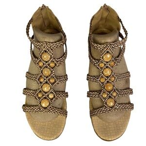 Forever Gladiator Woven Straps and Beads Wedge Sandals Womens Size 6.5