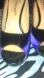 Chic peep toe heels in striking black and purple. Ideal for a night out. They are a size 7.. preowned but in good condition