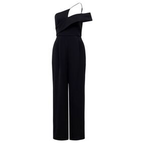 Perfect for race day, this black jumpsuit features an elevated asymmetric neckline. Pair yours with a matching fascinator and box clutch to finish the look.