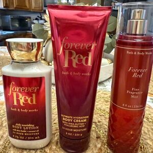 Experience luxury with the Forever Red collection. Includes body lotion, body cream, and fragrance mist. Rich red packaging adds elegance.