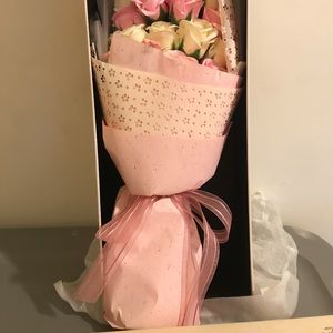 Bouquet of roses that were made. Petals are super soft to the touch encased in a flower box. Item will be listed only until tomorrow evening.