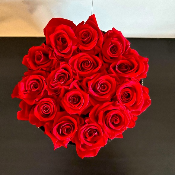 Roses that last a year in a black gift box with a stunning gold constellation design.