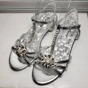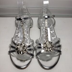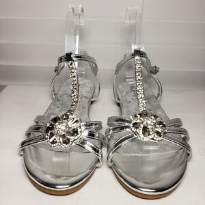 Condition: NWB - Silver Open Toe Rhinestone Slingback Flat Sandals