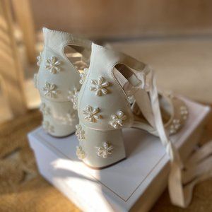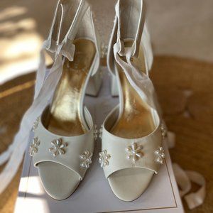 The most perfect wedding shoes! They have only been worn once, on my wedding day! They were so comfortable, and also so beautiful! Great for details shots.