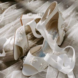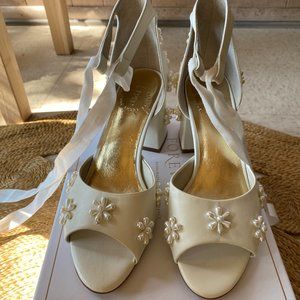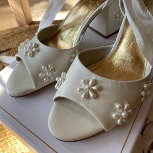 I wore these heels on my wedding day and wish I had more occasions to wear them again! They were truly comfortable and so so beautiful. They are in great condition, with only some minor scuffs on the bottom of the shoes. All pearls are still in place. Shoes will come in original box with extra pearls in case you lose any when you wear them.