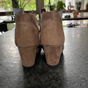Forever brand suede booties, tan color tie front closure wedge heel super cute