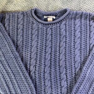 Forever Sweater Woman’s XL Blue Cable Knit Roll Collar Cotton Classic