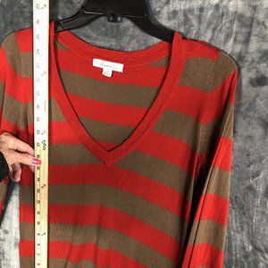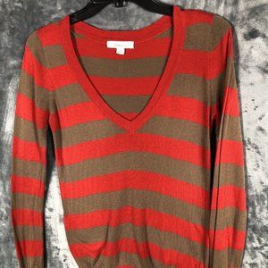 Forever Sweater Women’s Red Brown Striped Size Small Petite