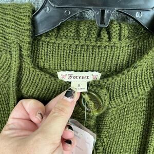 Forever Sweater Womens Small Army Green Wool Hooded Military Cottage Minimal