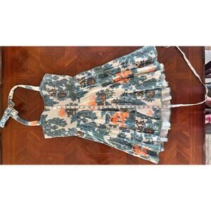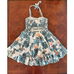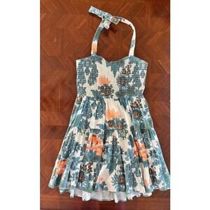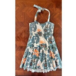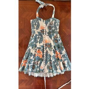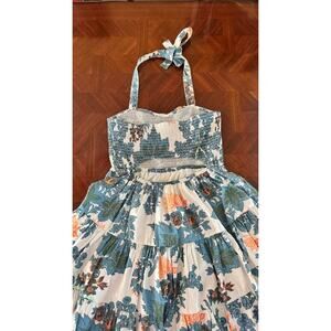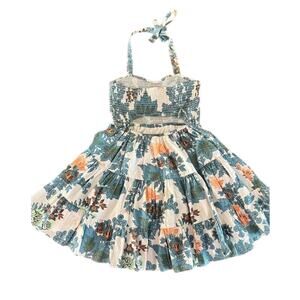 Forever That Girl Floral Smocked Halter Sundress Blue Orange Size S