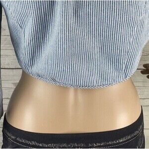 Forever Twentyone Boutique Cropped Jacket Small Blue White Striped Denim Unique