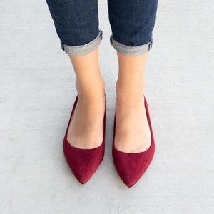 Forever Women Classy Pointed-Toe Suede Cushioned Flats - Burgundy - Size 6