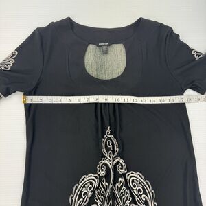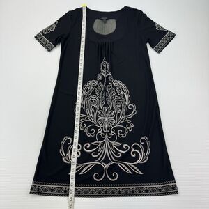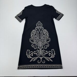 Forever Women’s Black Dress S Baroque Scroll Print Stretch Short Sleeve Scoop