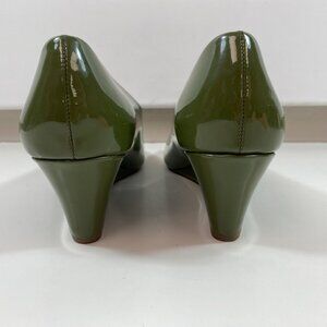 Forever Womens Olive Green Peep Toe Wedge Office Work Slip-On 2.5" Heel Size 10