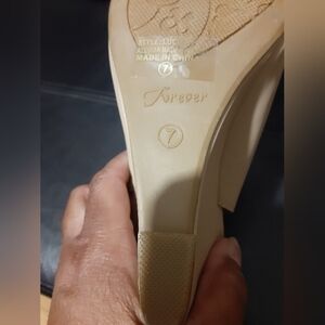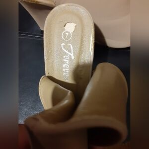 Forever Women's Tan Floral Embroidered Platform Slingback Peep Toe Highheel Sandals Size 7 Has Some Peeling Good Condition 3.5in Heel