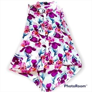 Forever XXI 21 PURPLE PINK FLORAL SLEEVELESS SHEER BLOUSE