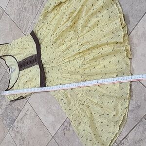 This sleeveless sundress from Forever features a vibrant yellow hue with a scoop neckline, perfect for casual outings or as a wedding guest. The fit and flare style offers a flattering silhouette, while the delicate lace fabric adds a touch of elegance.