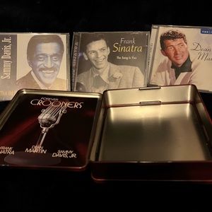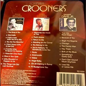 Forever Crooners cd set. Includes 3 CD of Frank Sinatra , Dean Martin and Sammy Davis Jr. CD. All your favorite songs to listen to on a car trip . Pre owned.