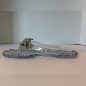 Forever rhinestone & bow accented jelly flip flops sandals size 9