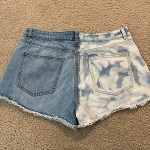 Forever 21 brand blocked split jean shorts. Size 31. Raw edge hem. 2 inch inseam