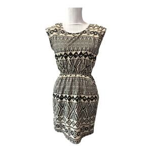 Forever 21 Aztec Print Mini Dress Women's Small Black Tan Elastic Waist Pleats