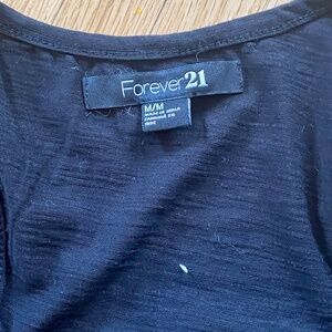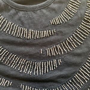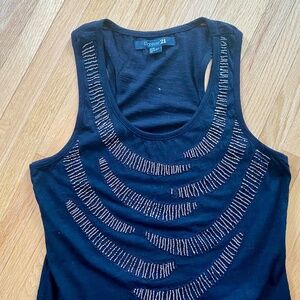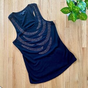 Elevate your casual style with this edgy-chic Forever 21 racerback tank featuring curved rows of shimmering silver seed beads. The soft black knit and sleeveless design make it perfect for layering or wearing solo during warm days or nights out. Great for adding instant glam to jeans or leather leggings.
