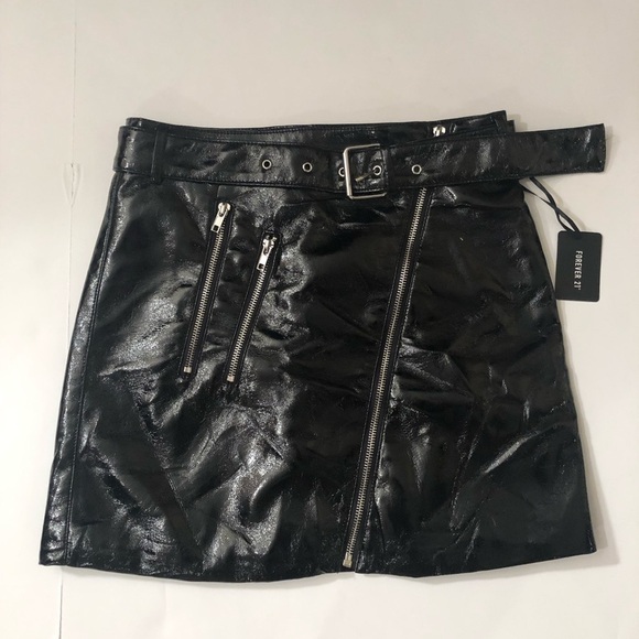 Forever21 Black Faux Leather Belted Mini Skirt NWT