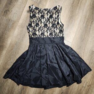 ✨🥂🪩F21 Black Lace & Taffeta Skater Mini Dress | Structured Peplum Party Going Out Womens Small🪩🥂✨