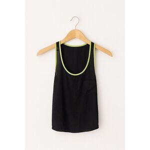 Add a pop of color to your wardrobe with this chic Forever 21 black sheer tank top with neon green trim. Perfect for layering or wearing on its own, this lightweight and airy sleeveless blouse offers both comfort and style.