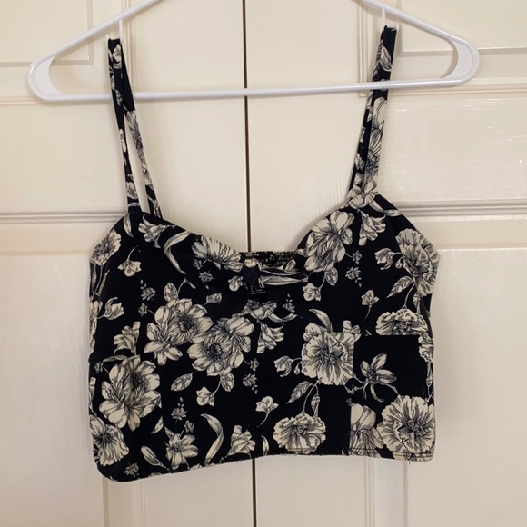 Forever21 Black & White Bow Crop Top Size L