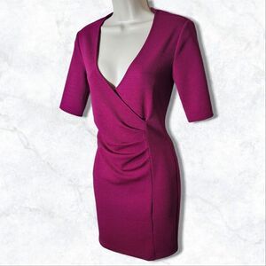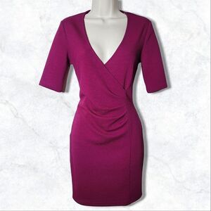 Forever 21 Burgundy Faux Wrap Fitted Cropped Sleeve Mini Knit Dress;