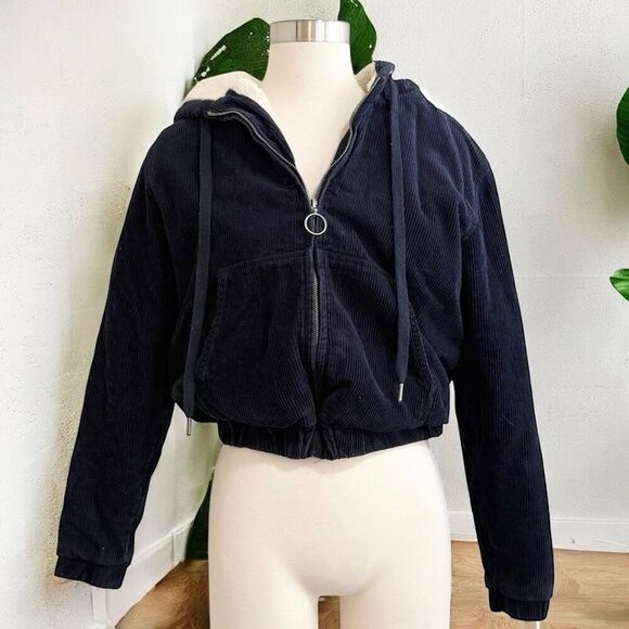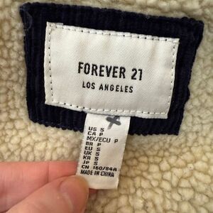 Forever 21 Corduroy Blue Navy Cream Bomber Aviator Sherpa Shearling Coat Jacket