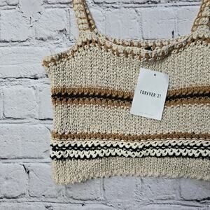 Forever21 Crochet Knit Sweater Crop Top Taupe Beige Cotton Blend New Size Medium