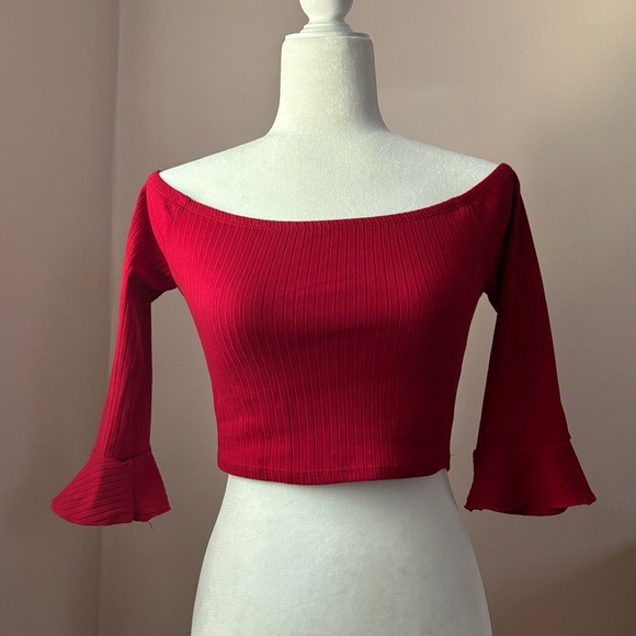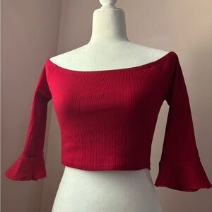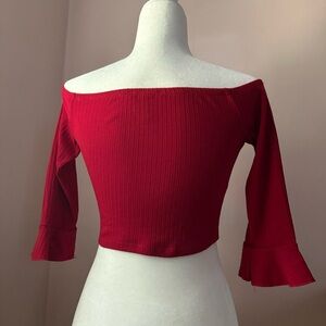 Forever21 Cropped Off the Shoulder Flounce Sleeve Top in Red