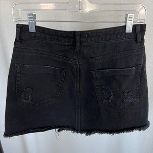Distressed Jean Skirt from Forever21 in new condition! Perfect length, not too long not too short. High Rise with a flare to slim fit around the hips. Distressed on back pockets and front giving a nice thigh moment. Pair these with a black or printed heeled bootie and a graphic tee and you're set for a night downtown or at your favorite bands concert. This skirts not going out of style!