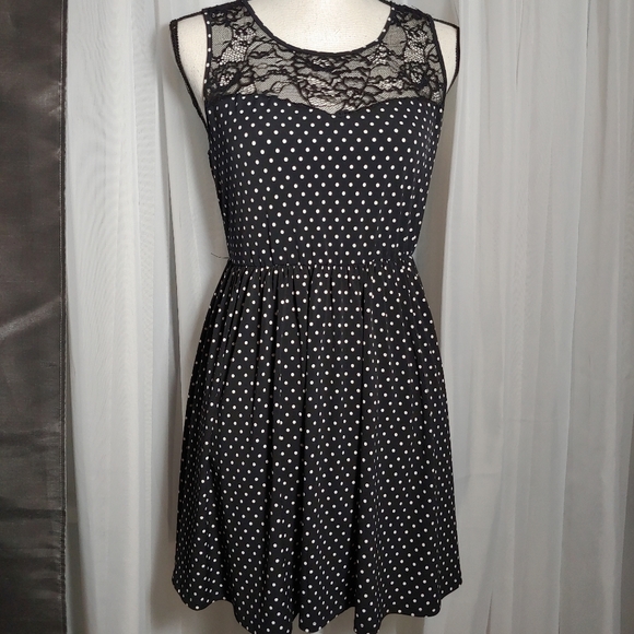 Forever 21 Black halter dress with white polka dots Flattering lace neckline Size Medium Like-new condition