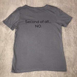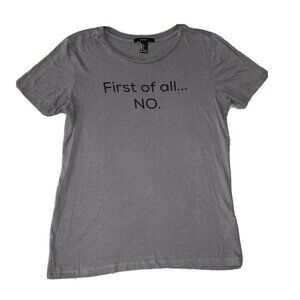 Forever21 FIRST OF ALL NO SECOND OF ALL NO Womens Gray Short Sleeve T-Shirt Sz S