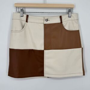 Forever 21 Faux Leather Patchwork on Brown And Tan Mini Skirt L