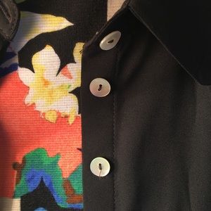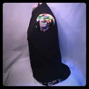 Forever 21 Hilo Chiffon black collared button down sleeveless top. Can be dressed up or down. Top features mother of pearl buttons semi-sheer