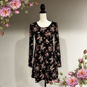 Forever 21 Long sleeve floral mini skater dress size Xs