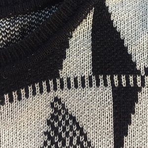 This is a super comfy and soft long sleeve thick sweater. Only worn a few times with cool geometric black and white patterns.