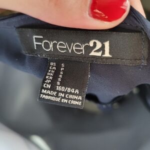 Forever21 Navy Blue Long Sleeve Blouse Chiffon Keyhole Button Front Small Dressy