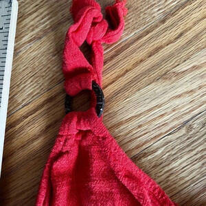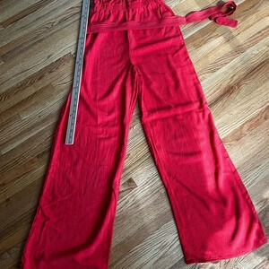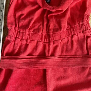 Forever21 orange romper, size small. Straps are knotted with frayed fabric and an accent wooden circle. Elastic waist with wide legs. In good used condition.