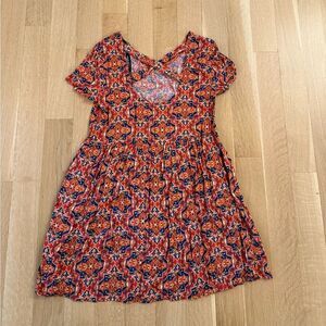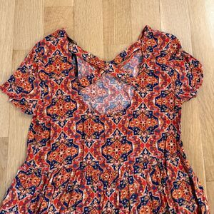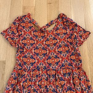 Forever 21 Orange and Blue V-Neck Flutter Sleeve Mini Dress