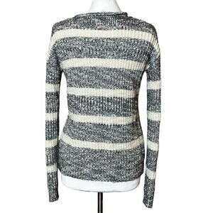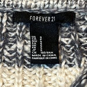 Forever 21 Shaker Knit Roll Collar Chunky Blue Marled Yarn Rugby Stripe Sweater