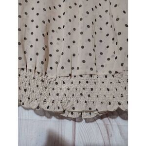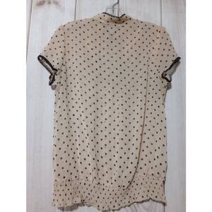 Forever 21 Shirt Ladies Large Tan Black PolkaDot Sheer Short Sleeve Black Lace T