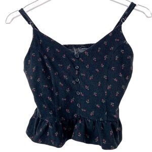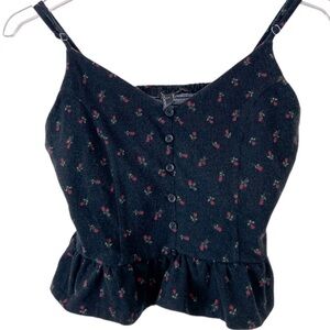 Forever21 Spaghetti Strap Black with Red Roses Tank Size Medium.