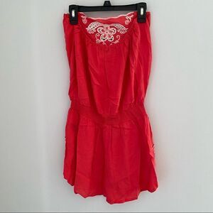 Forever 21 Strapless Eyelet Embroidered Romper Pink
