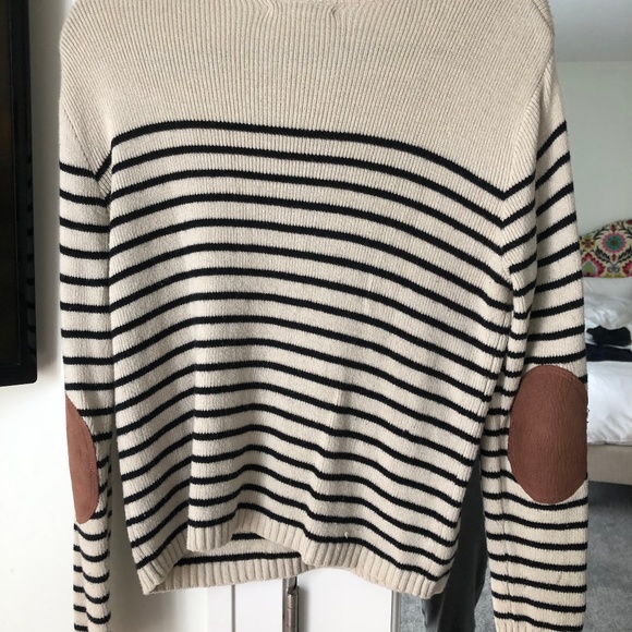 Forever21 Striped Sweater with brown leather patches - great condition barely worn