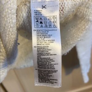 Women’s Forever 21 Pullover Sweater Amour solid White with black writing long sleeve tight knit knitted size S made in China Cotton blend casual straight heme hand wash 65% Cotton 35% Acrylic. Great condition good condition used condition. No rips. No holes. Not a hole but a small pull as seen in picture. Not noticeable. This can also fit a size Medium. Size m